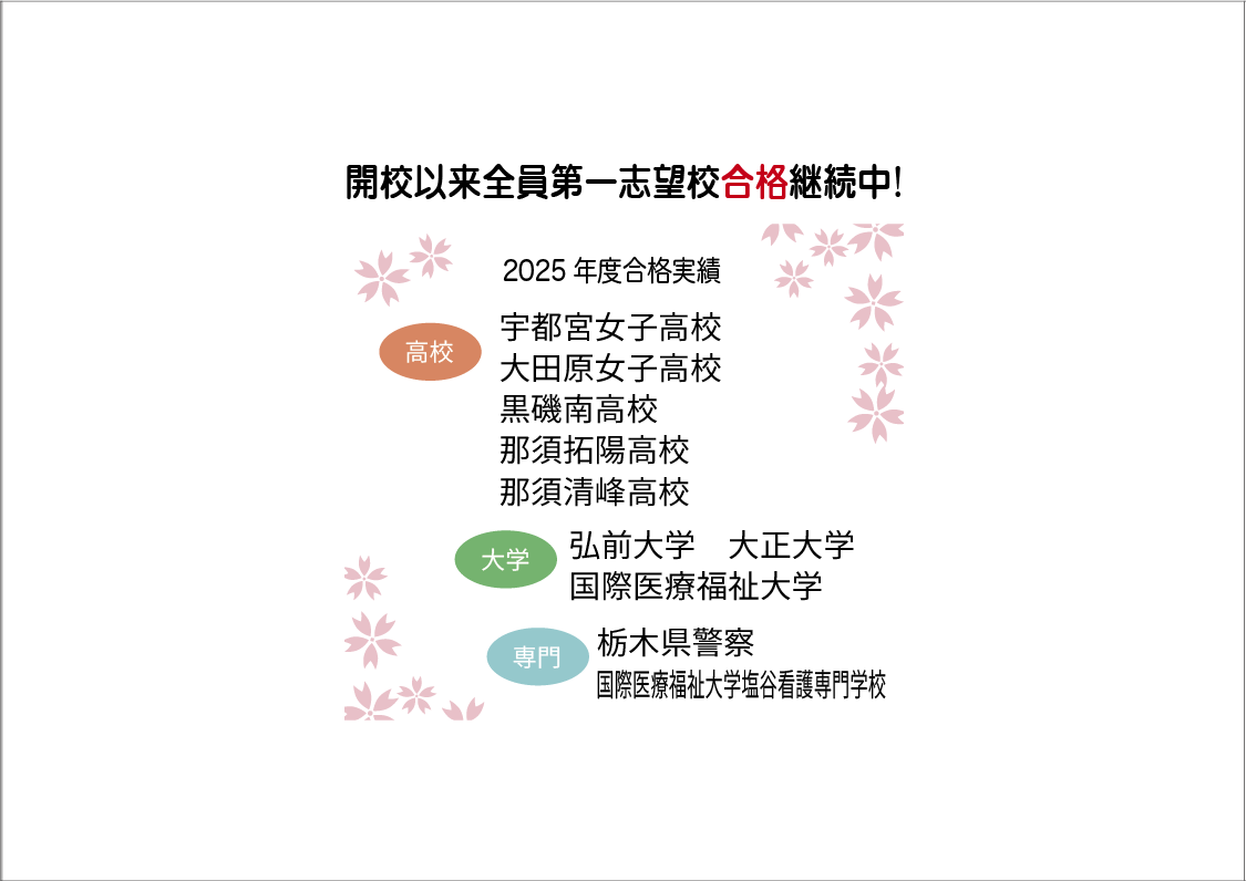 - 2025.01.11 インスタグラム始めました。その日の塾内の様子や生徒様の学習の様子を投稿していきます。