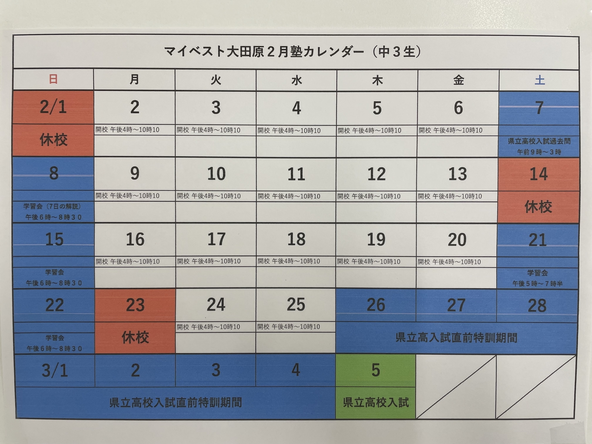 2月7日(土)午前9時~3時(県立高校入試過去問実施 昼食持参)